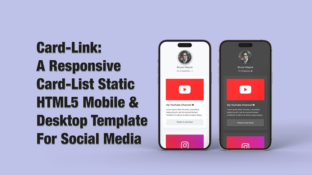 Cardlink is a responsive card list static HTML5 template. Built with HTML5 & CSS3. This is a Bootstrap 5 mobile template for your links & social media apps. This template is ideal for someone to host their own website.