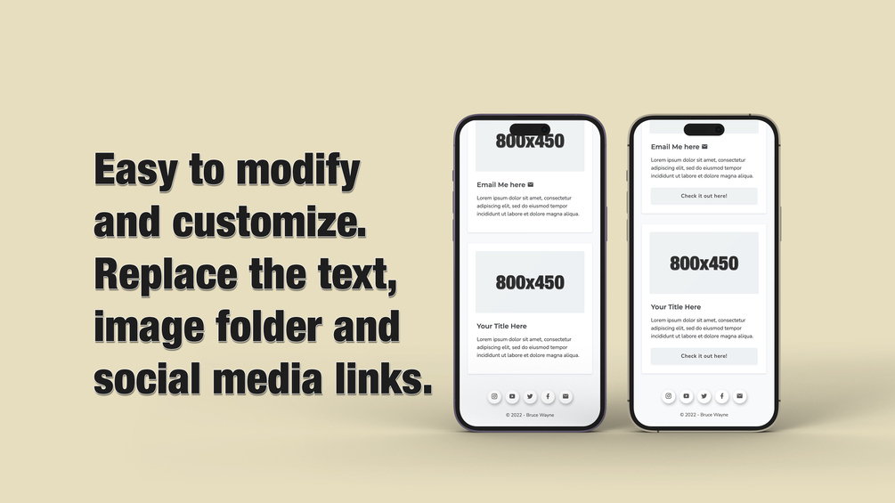 The 2 HTML files included with this theme, one labelled desktop and another labelled mobile, are easy to use and customize. These correlate to the buttons and the no buttons template.