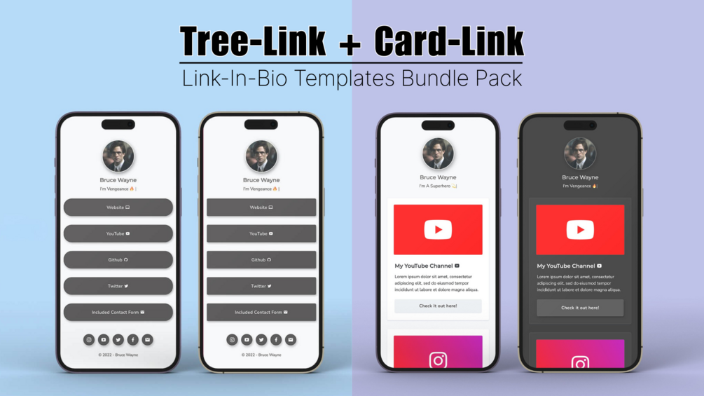 This dual-pack link-in-bio template offers a self-hosted, secure, and customizable solution for showcasing all your links and social media profiles. Ideal for individuals seeking full control over their online presence, it eliminates the need for third-party services like Linktree, ensuring privacy and freedom from ads.